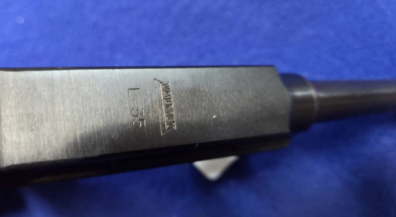 Lahti-pistooli Valmetin luistilla. Ei numerotarkka, 3-sarjaa, luisti luultavasti varikolla vaihdettu. SA-leima